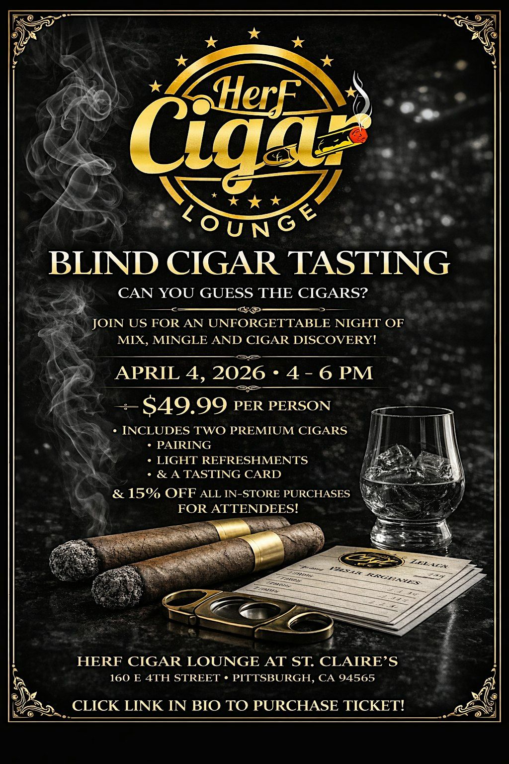 Join us for a unique and interactive Blind Cigar Tasting Experience at Herf Cigar Lounge at St. Claire’s.