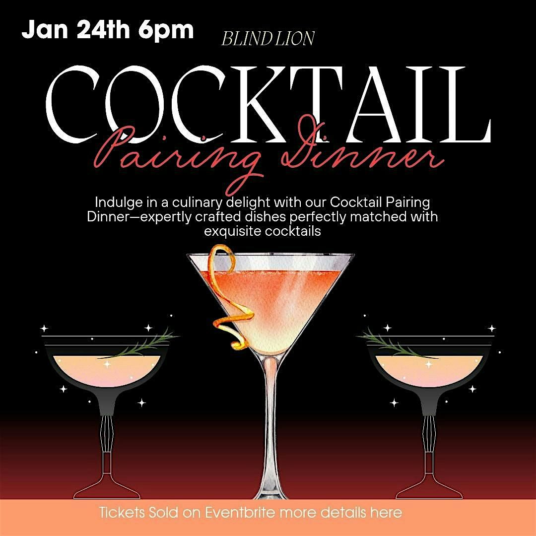 Join us at Blind Lion on January 25, 2026 at 6:00 PM for an evening of exquisite cocktails paired with delicious dishes.