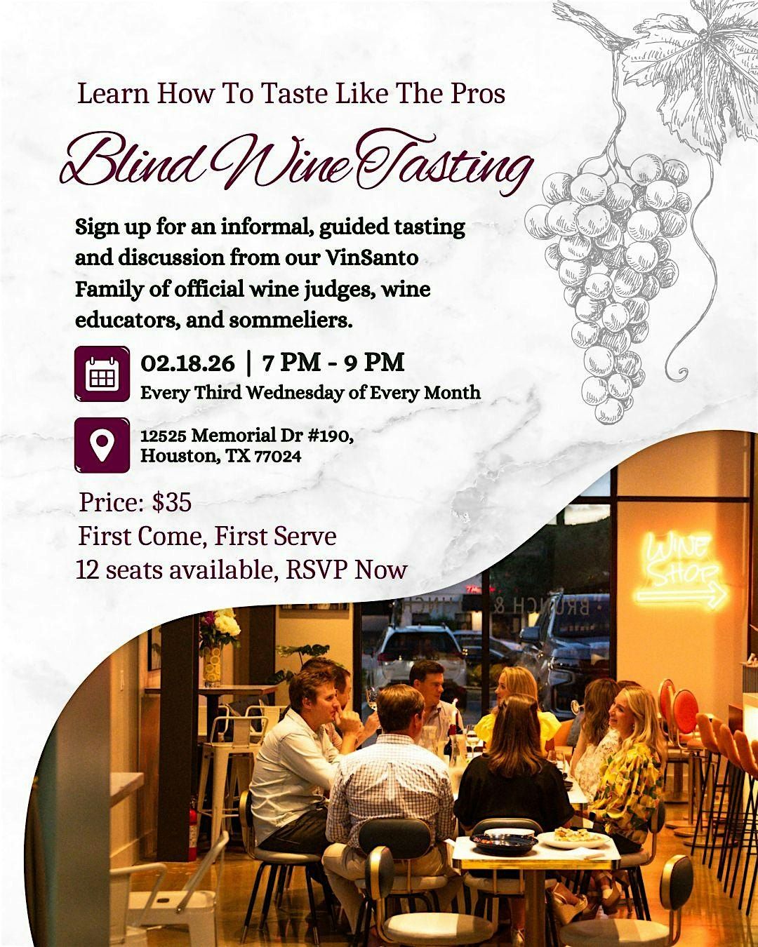 Gain a deeper appreciation for wine with our blind wine tasting with our an informal, guided tasting and discussion from our VinSanto Family of official wine judges, wine educators, and sommeliers.
