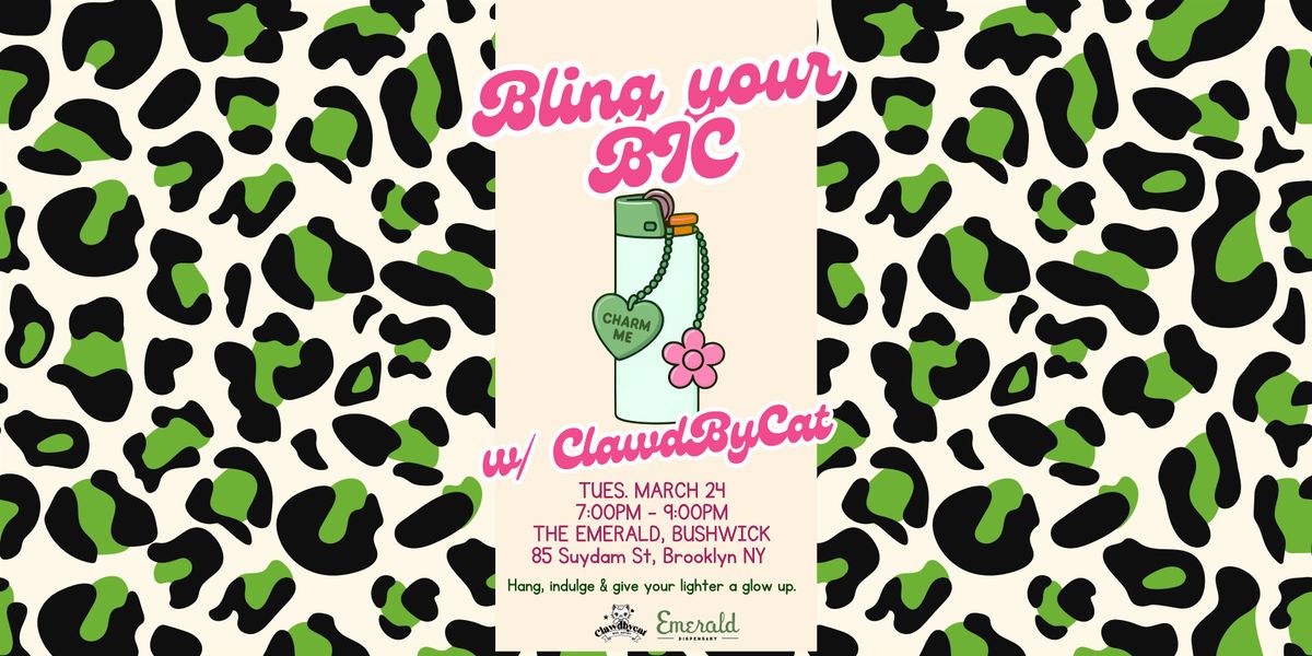 Join us at The Emerald Dispensary on March 24 for a fun, hands-on BLING YOUR BIC! workshop led by licensed nail tech ClawdByCat. You’ll customize your very own lighter that’s impossible to lose in the sesh :)