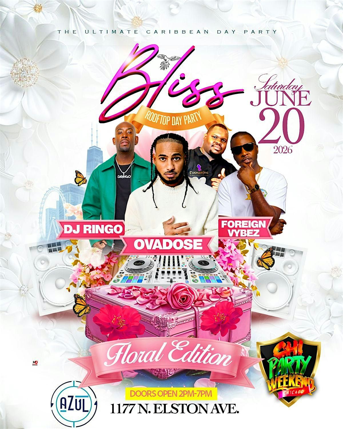 Get ready for the ULTIMATE Caribbean rooftop experience as Bliss Day Party returns with a stunning Floral Edition— where style, vibes, and energy collide in the heart of Chicago!