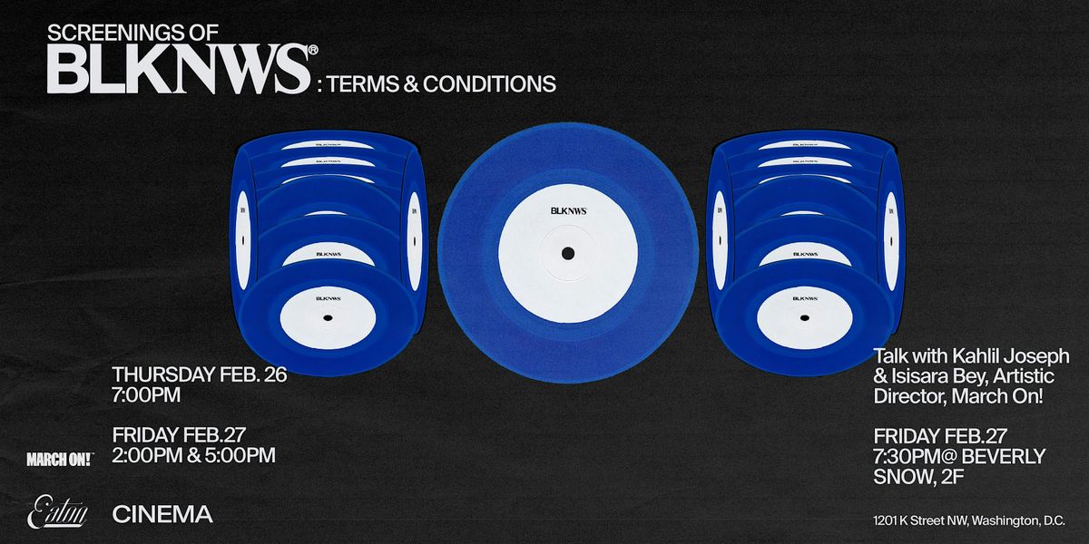 As we close out Black History Month, Eaton DC, in partnership with March On!, invite our community to gather for a powerful evening of film, dialogue, and collective reflection with screenings of BLKNWS: Terms and Conditions, followed by a talkback with acclaimed artist and filmmaker Kahlil Joseph and Isisara Bey, Artistic Director, March On!