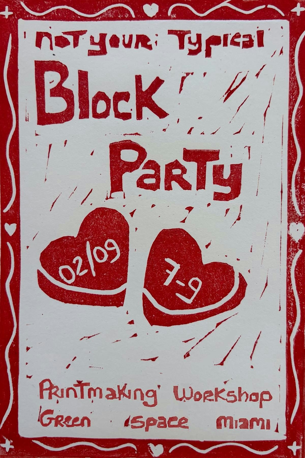 Join us Monday, February 9th from 7–9 PM at Green Space Miami. For a printmaking workshop where you’ll design and carve your own printing block and use it to create unique, hand-printed Valentine’s Day cards. Whether your cards are romantic, funny, heartfelt, this is a chance to slow down, get creative, and make something truly personal.