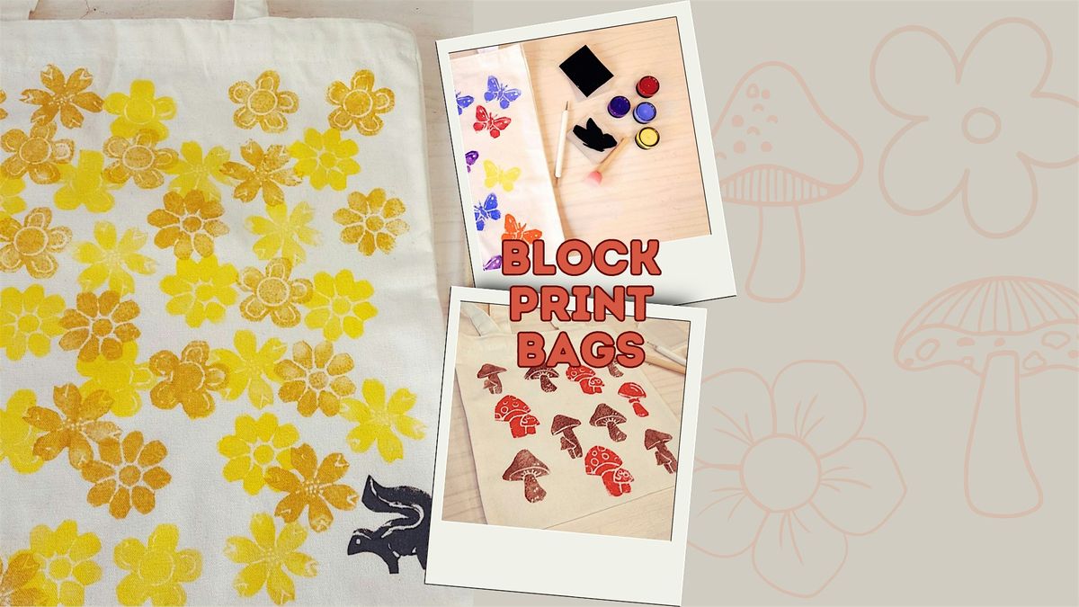 Learn the ancient art of block printing! This craft has been around for hundreds of years, and you’ll learn how how easy and fun it is to make our own block printed artwork. Leave with beautiful bags to show off. We'll be making a mini (6x6.5") and a large (13x15") tote!