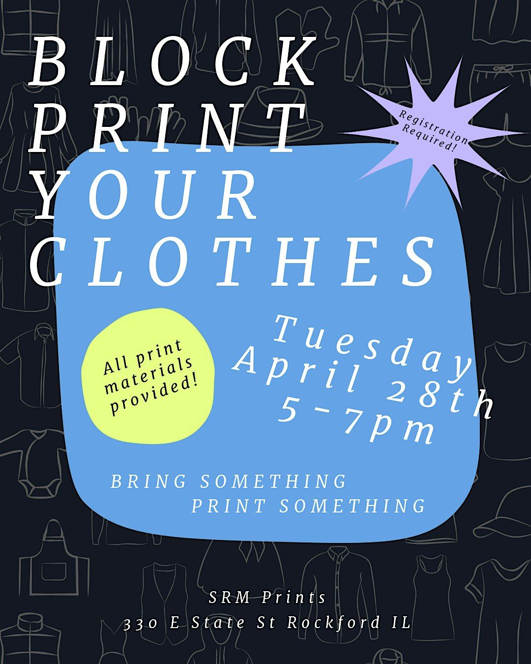 In this hands-on workshop, participants will learn the basics of block printing on fabric — including inking, placement, and building a repeat pattern — and apply those techniques directly to garments they bring from home.