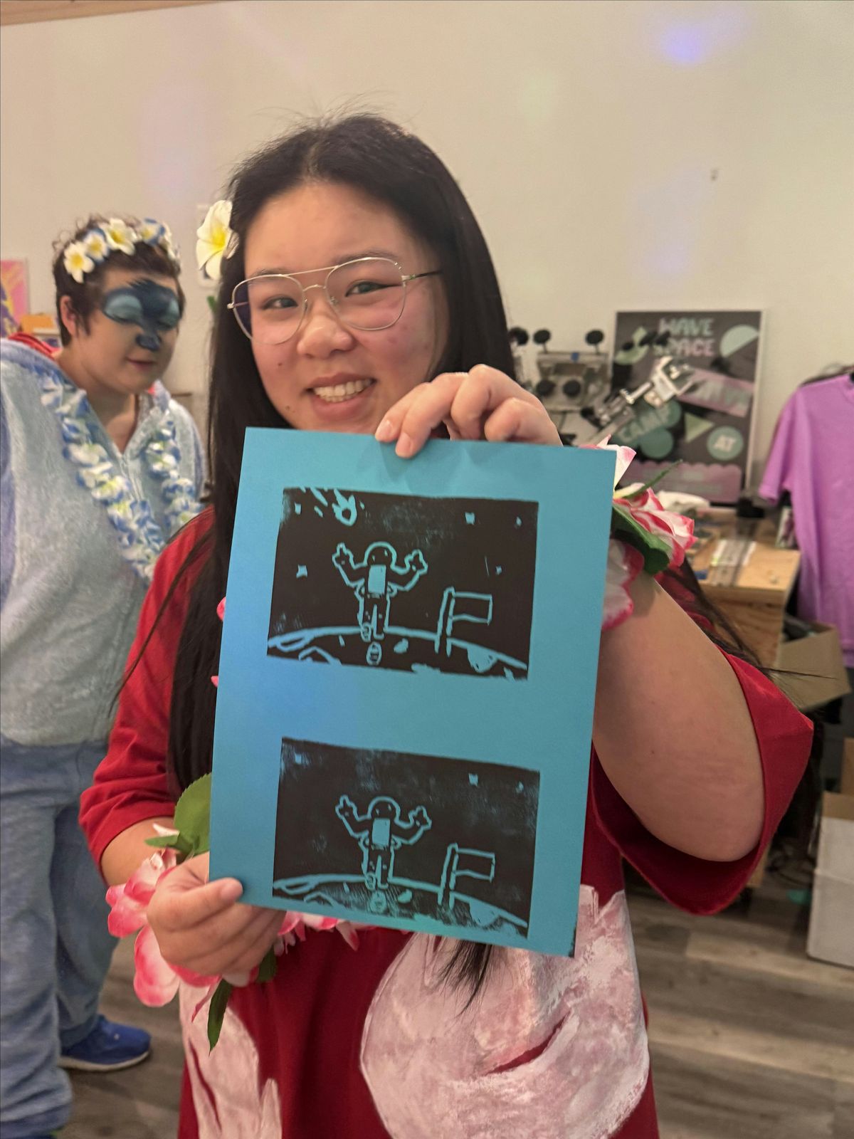 After your block is carved, we will roll out in and ink up our printing plates and print on paper. If you would like to print on some other substrates, feel free to bring your own. Some examples can include T-shirts, hats, pillowcases, or tote bags.