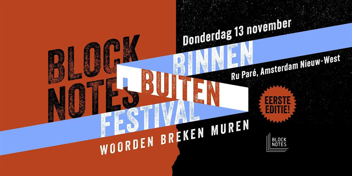 Op donderdag 13 november 2025 openen we de deuren voor de allereerste editie van het Blocknotes Binnen Buiten Festival. Een krachtig en vernieuwend literair festival.