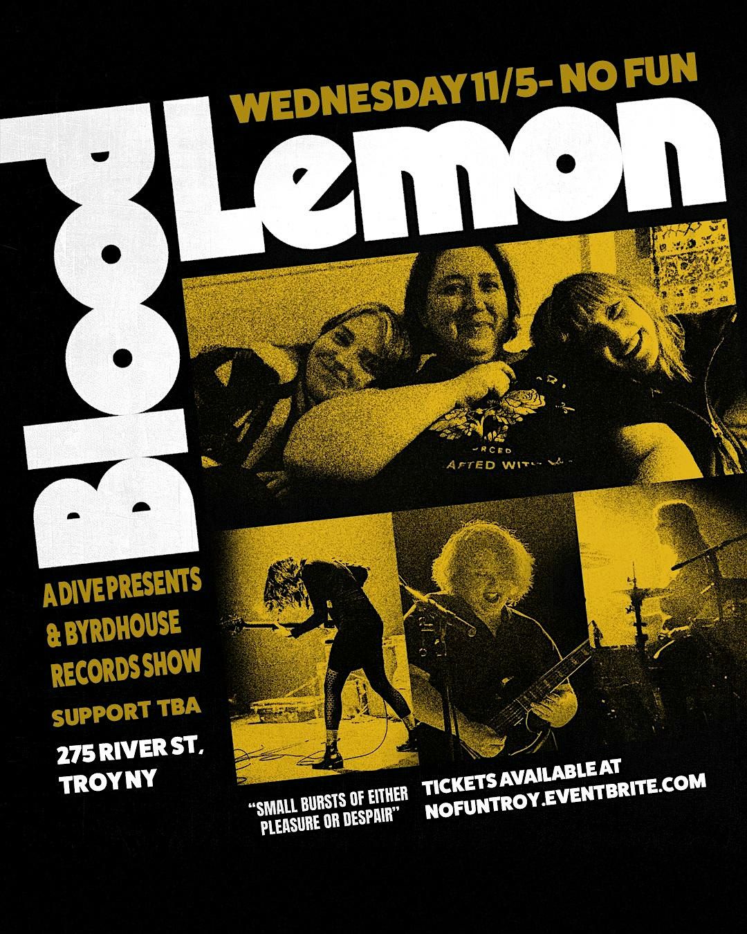 Byrdhouse Records x Dive Presents Blood Lemon and Support TBA on Wednesday 11/5/25 at No Fun in Troy, NY!