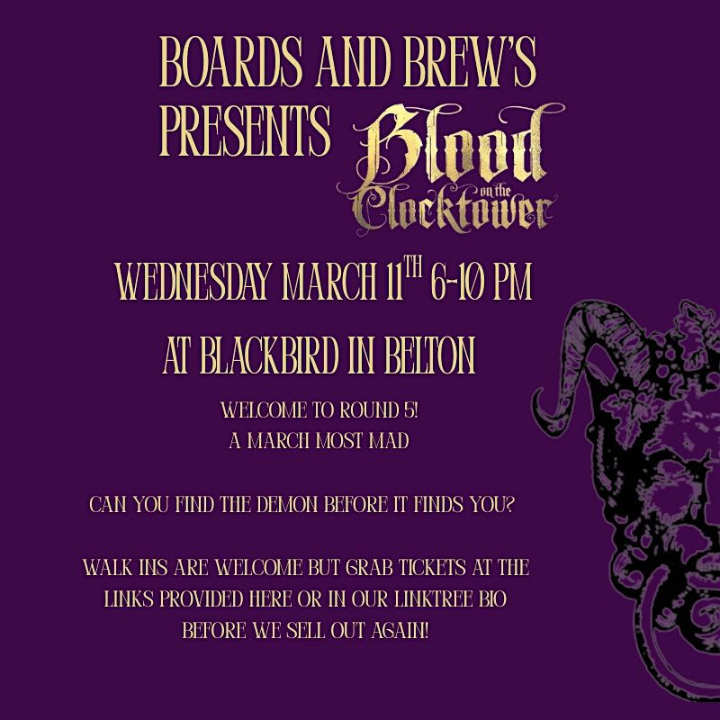 With valentines done come on in for another night of M**der as we run everyone’s favorite blood on the clocktower