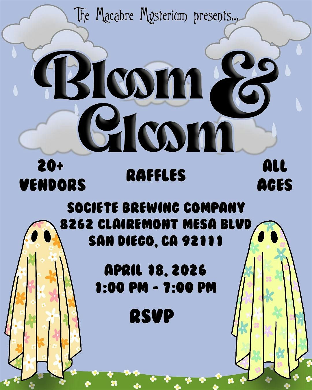 Bloom & Gloom is a spring-inspired makers market where light and shadow coexist beautifully. Hosted by The Macabre Mysterium in collaboration with Societe Brewing Company, this all-ages event brings together 20+ curated vendors, raffles, and a welcoming community space to shop small and support local creatives.