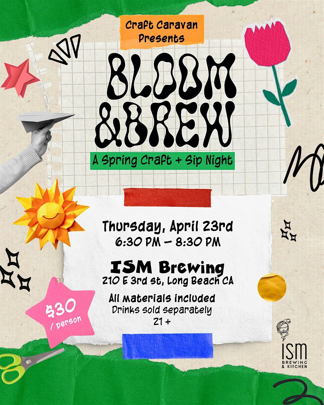 Join us for a super fun in-person evening where creativity meets chill vibes! Get your hands busy with cool crafts while sipping on your favorite brews. It's the perfect way to unwind, meet awesome people, and let your crafty side shine. No experience needed—just bring your enthusiasm and get ready to Bloom & Brew!
