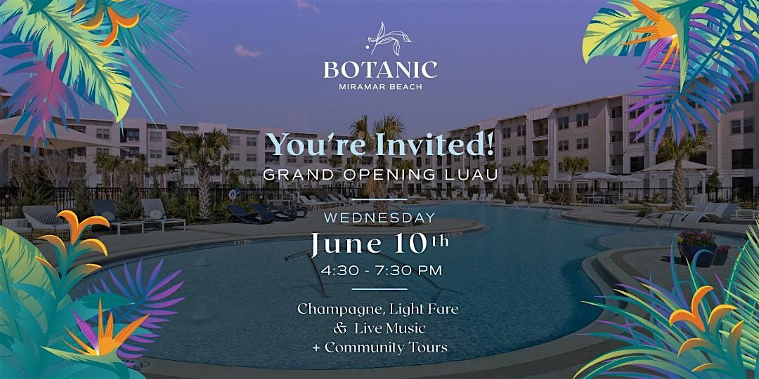 Join us for a luau-inspired evening as we debut Botanic Miramar Beach. Enjoy champagne, light bites, and live music set against the backdrop of our beautiful community.