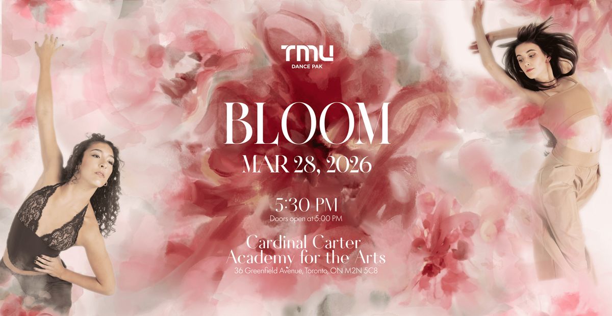 We welcome you to join TMU Dance Pak in commemorating their 22nd season; a year full of beautiful memories and amazing artistry. We could not be more pleased to invite you to sit back and enjoy our year end show, Bloom. This marks the expansion of power, grace, and resilience. We celebrate our sisterhood and the women who continue to rise, expand, and flourish unapologetically.