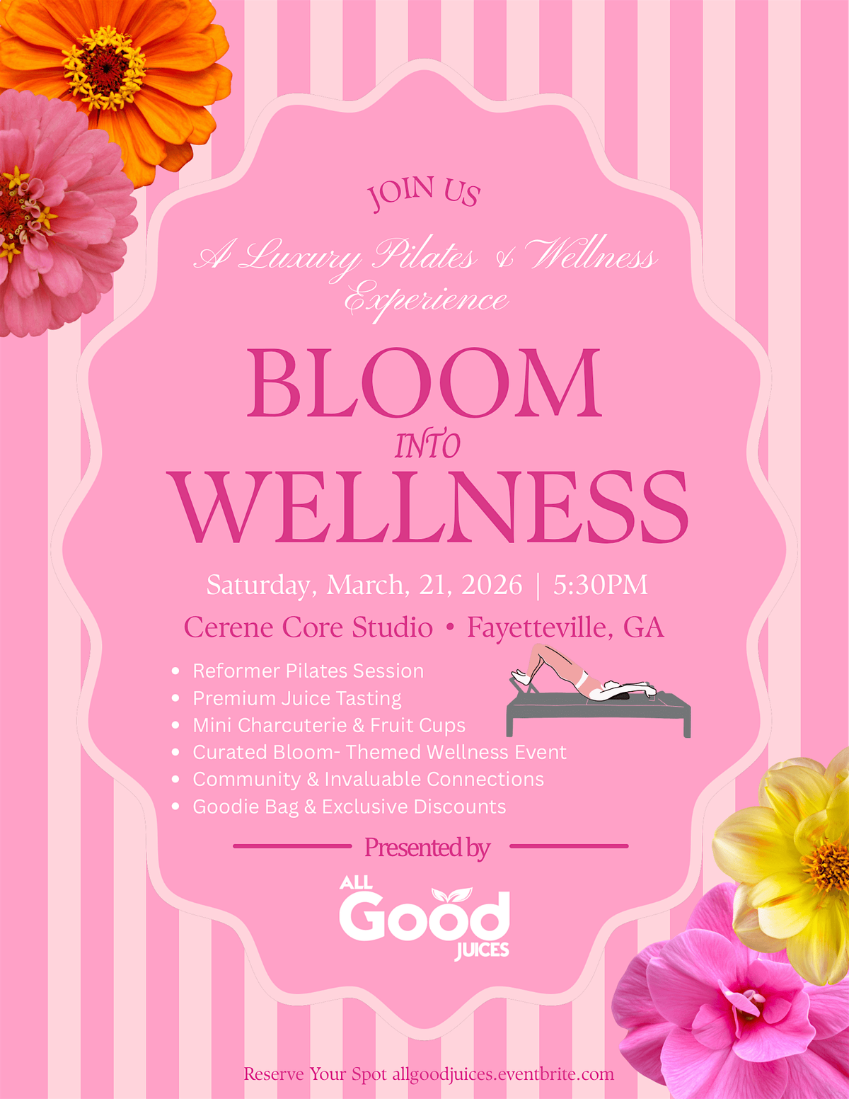 Presented by All Good Juices, this curated experience invites you to slow down, show up intentionally, and spend your time in a space created for women who value wellness, softness, and elevated living.