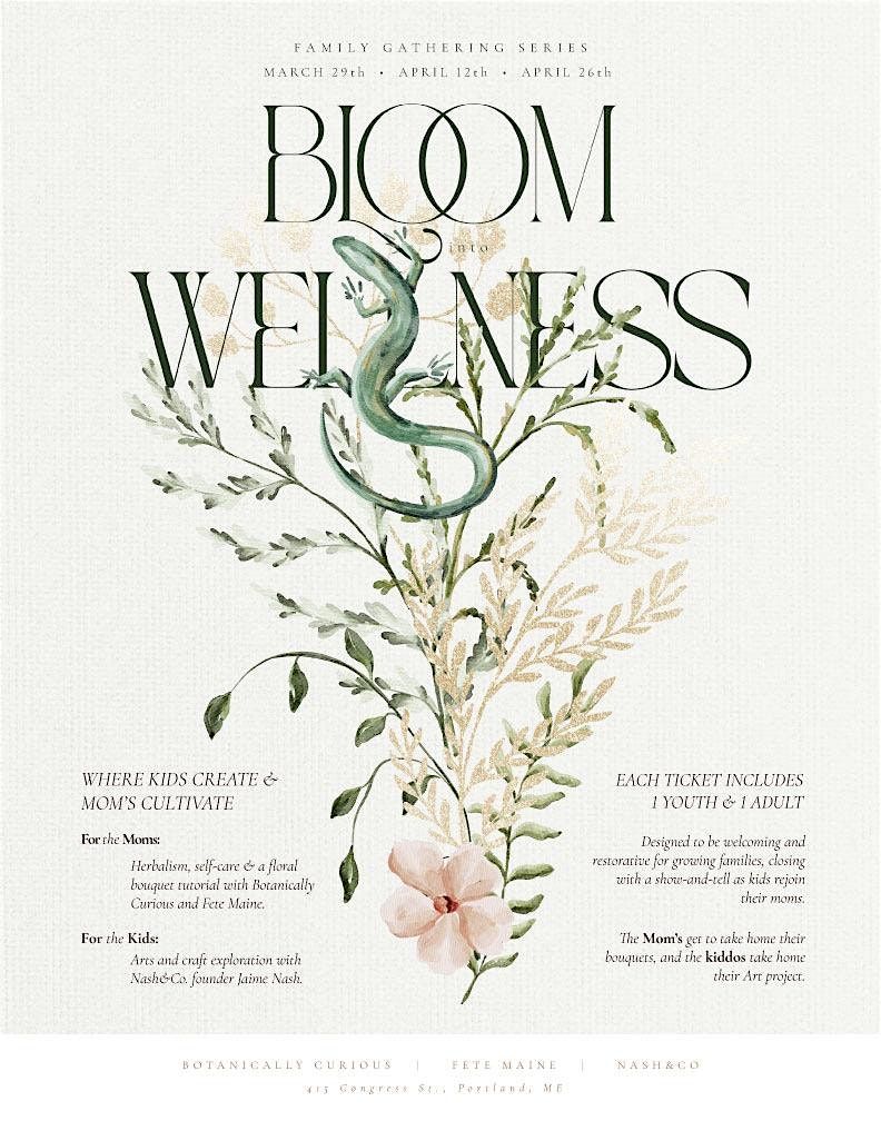 Children explore art and creativity with Nash & Co. while adults learn simple, accessible ways to support their health through herbalism and seasonal self-care with Botanically Curious. Fête founder Lindsay Coutu will also walk adults through a seasonal floral bouquet tutorial as they sip herbal lattes and find calm. Kids take home art, parents take home their bouquet!