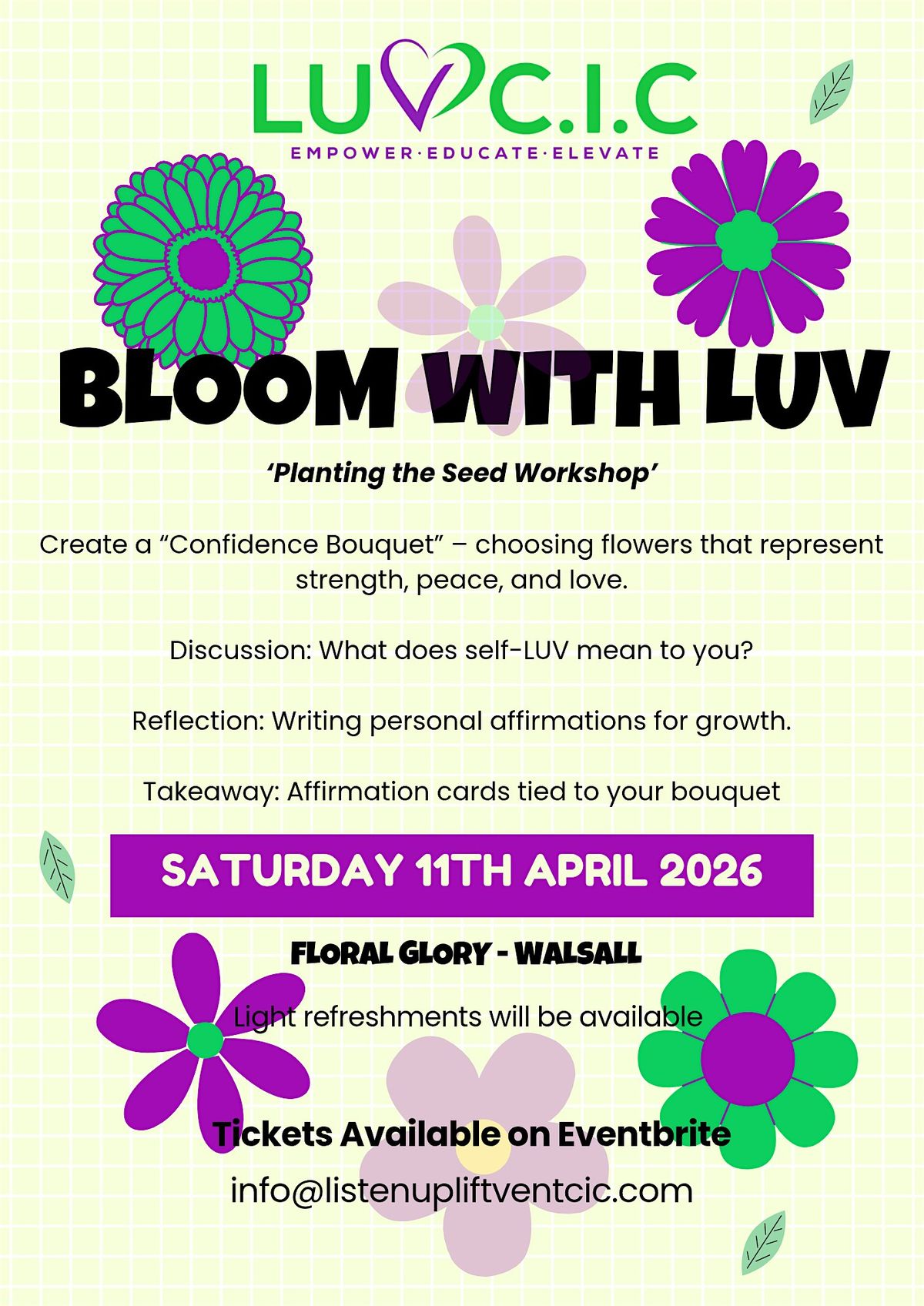 Create a “Confidence Bouquet” – choosing flowers that represent strength, peace, and LUV.