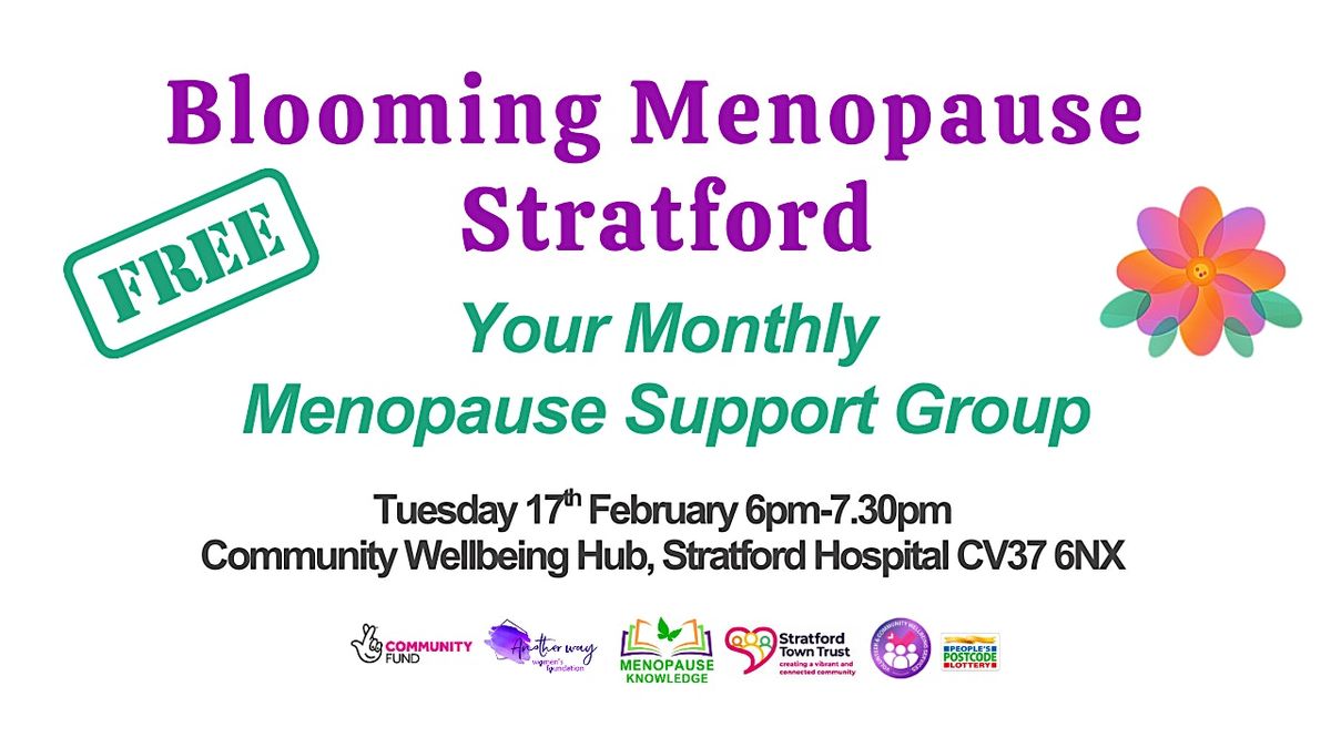 Join us for our exciting new monthly support group, part of the "Blooming Menopause in Stratford District" project, at the Wellbeing Community Hub, part of Stratford Hospital.
