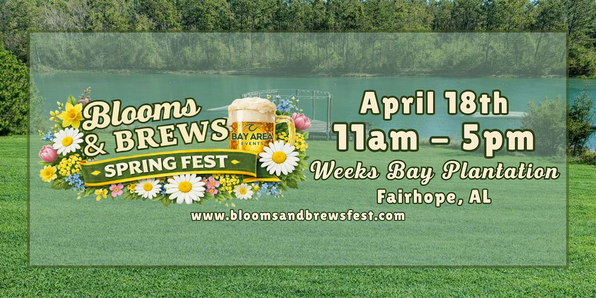Get ready for a full day of springtime fun at Blooms & Brews Spring Fest, a vibrant outdoor festival celebrating local flavor, live music, and family-friendly fun at the beautiful Weeks Bay Plantation.This all-day festival brings together craft beers, cocktails, food trucks, live music, and interactive activities in a scenic natural setting with something for every age and every vibe.