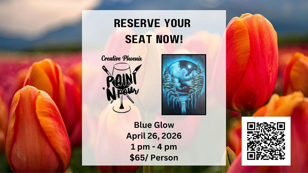 Join us at Creative Phoenix Art Studio to paint Blue Glow, a mesmerizing landscape inspired by Bob Ross techniques.