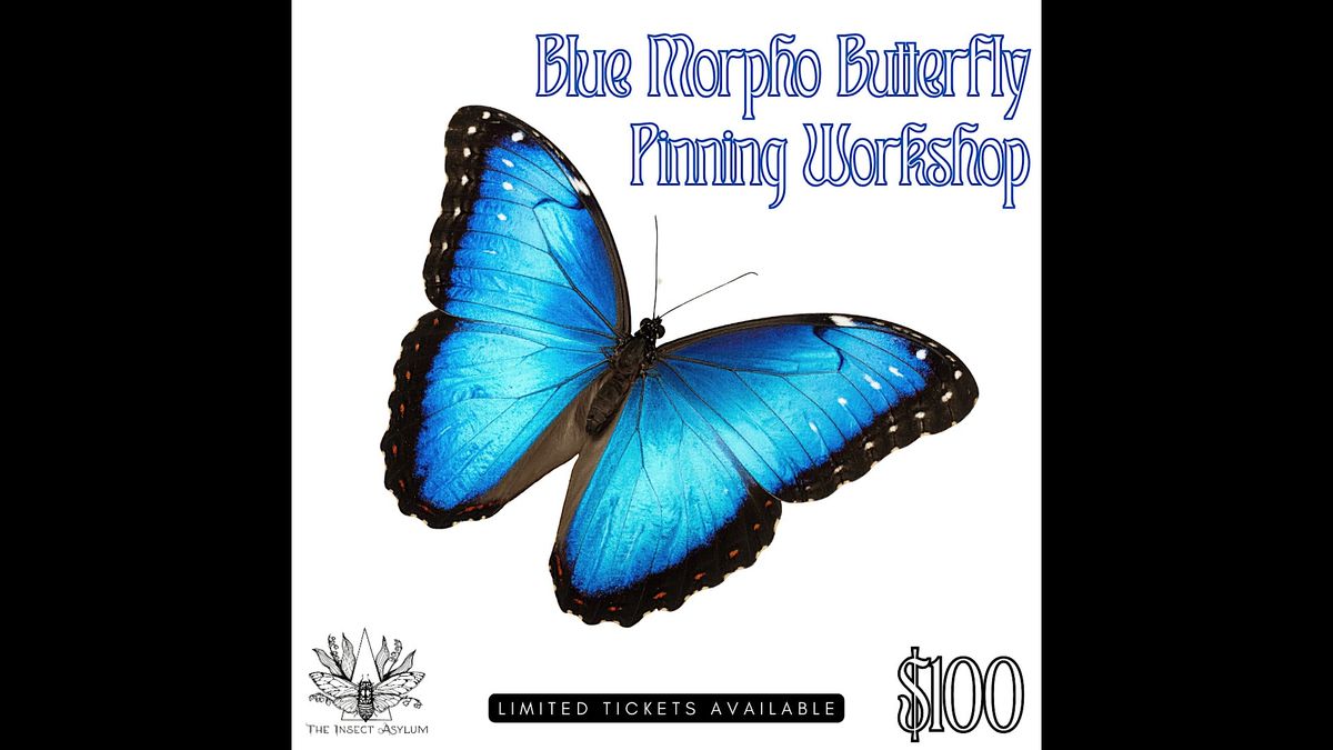 Join us for an exclusive Blue Morpho butterfly pinning class at The Insect Asylum! Dive into the enchanting world of this iconic butterfly species found only in the tropical areas of Costa Rica.