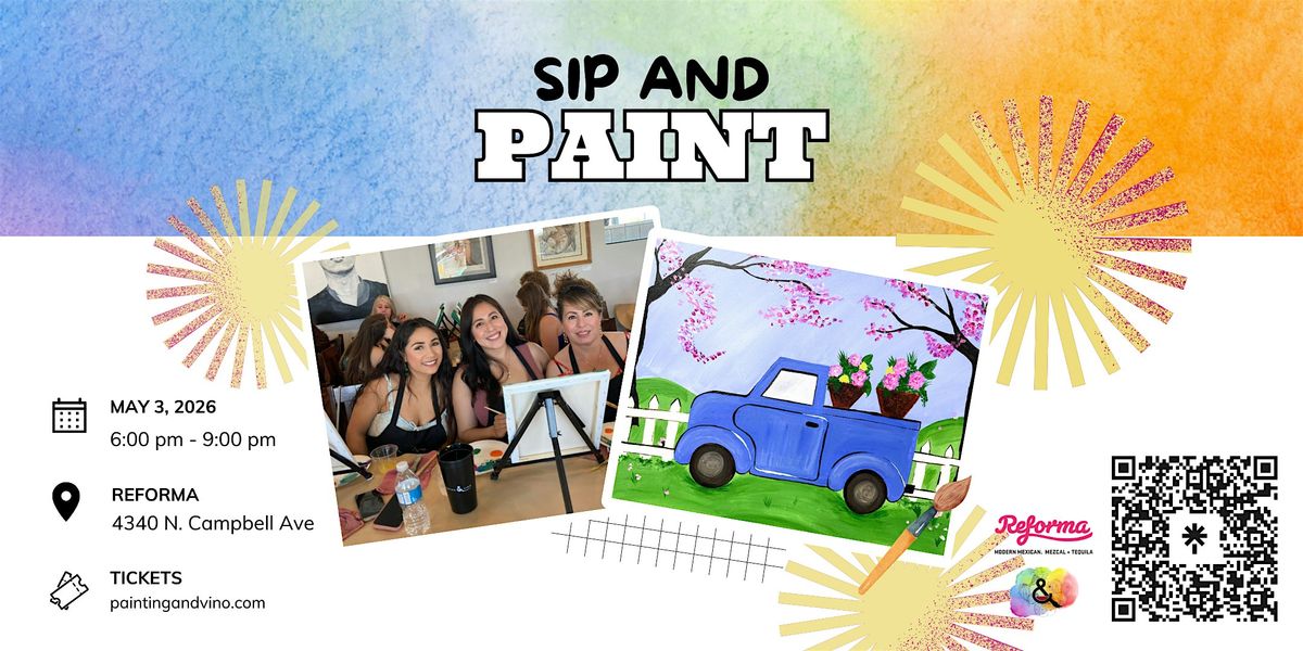 Join us for margaritas, art and fun at indoor Reforma Modern Mexican! Get ready for a creative, fun-filled night of socializing at this “Blue Pickup Truck” paint night! Whether you’re an experienced artist or just looking for a memorable experience, this paint and sip promises an approachable, artistic activity for friends, family and couples.