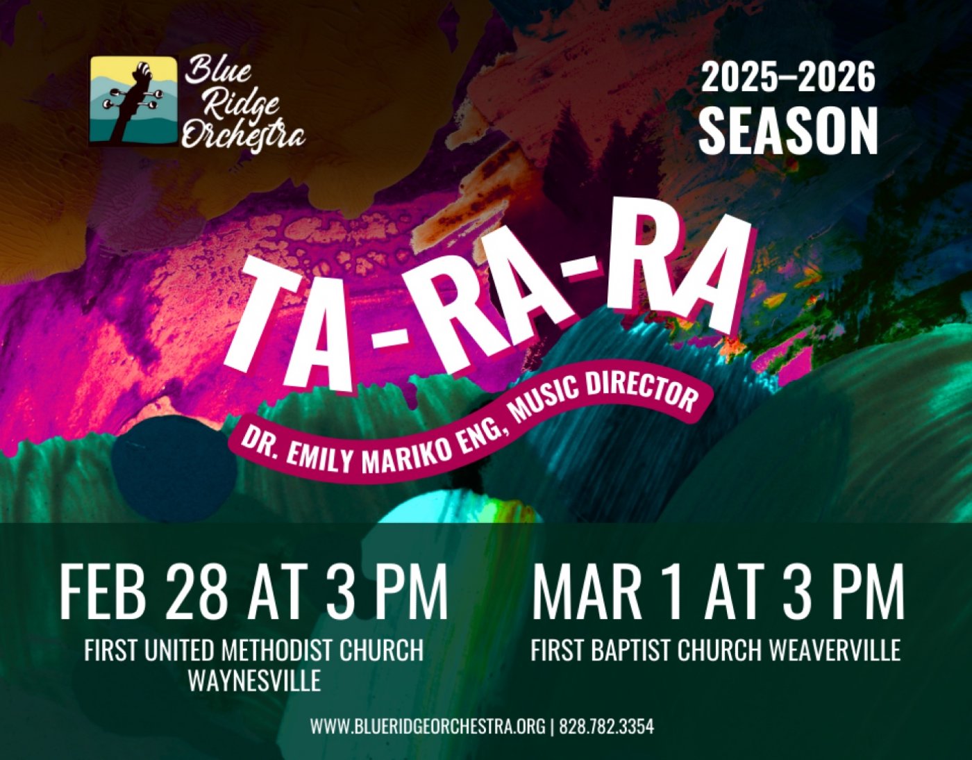 Info: https://blueridgeorchestra.org/ta-ra-ra-feb-mar-2026, Facebook, Instagram, or call 828-782-3354.