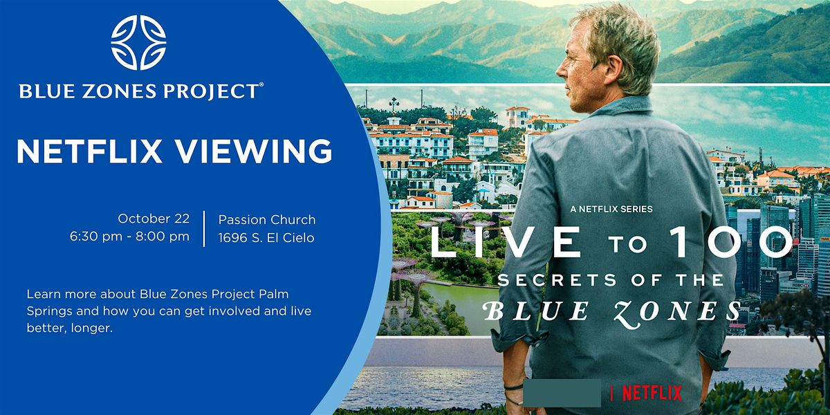 Join us for a viewing of the acclaimed Netflix docu-series, "Live to 100." Including a conversation about Blue Zones Project Palm Springs and how you can get involved and live better, longer!