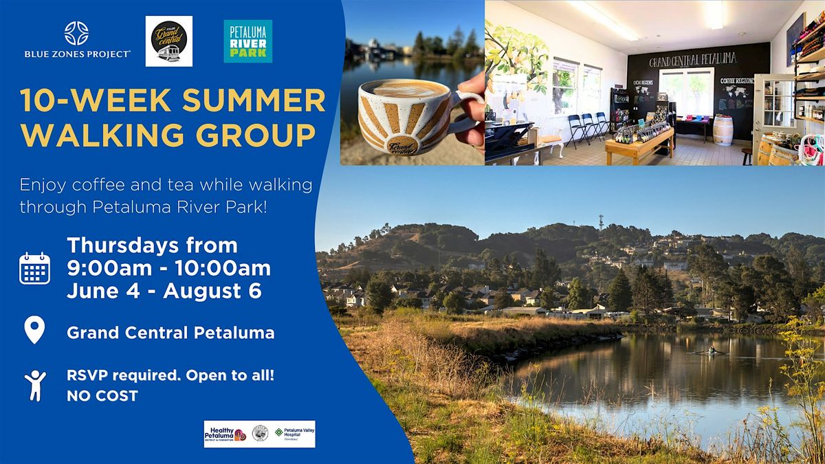 Join us for a 10-week Summer Walking Group, in collaboration with Petaluma River Park, Grand Central and Blue Zones Project Petaluma!