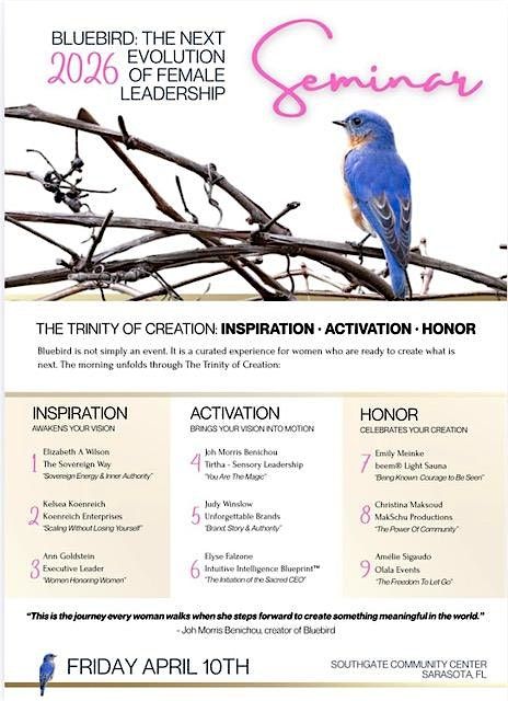 Bluebird began as a series of gatherings that brought together over 300 women and 21 speakers across Sarasota — sparking new collaborations, women’s circles, and leadership communities across the region. In honor of Joh's mentor who gave her a glass bluebird and said "Never forget you are the magic."