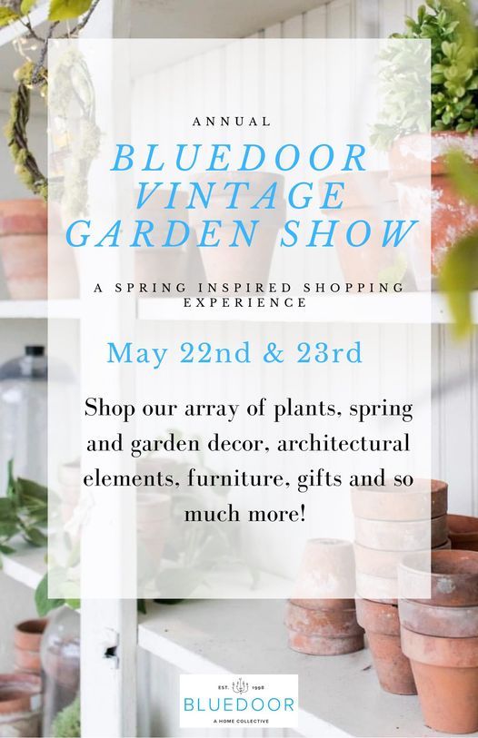 Join us Saturday and Sunday May 22nd & 23rd for our Annual Garden Show!Shop our array of plants, spring and garden decor, architectural elements, furniture, gifts and so much more!