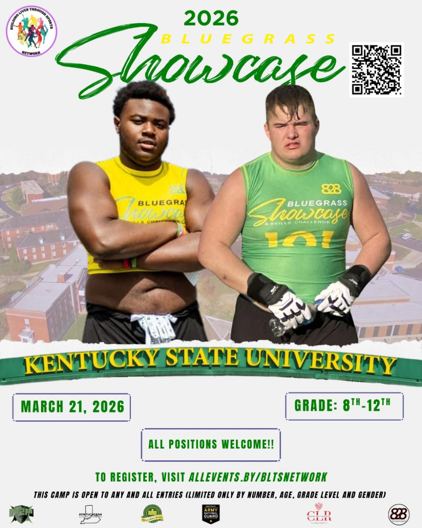 The annual Bluegrass Showcase is the FIRST and ONLY multi-event camp in AMERICA! The FOOTBALL CAMP features not only a football camp, but also a campus tour of Kentucky State University. This event is structured to provide comprehensive athletic evaluations and information for both athlete and parent regarding the college recruiting process. Each student-athlete will be able to gain exposure from local media and various recruiting services. In ordinance with the NCAA and NAIA regulations college coaches MAY BE in attendance.