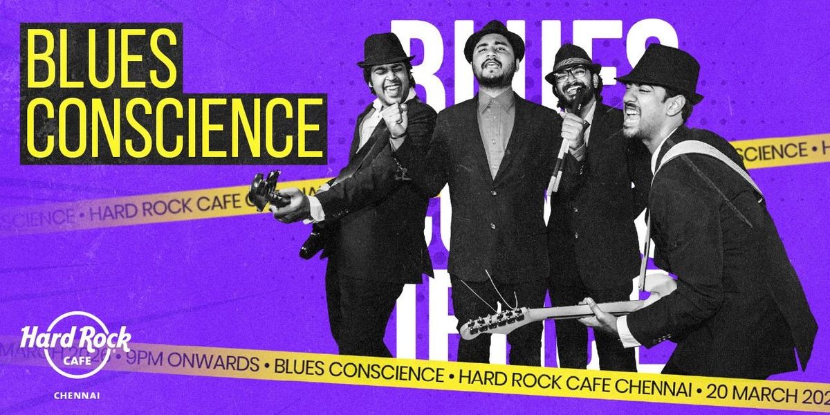 Blues Conscience brings an evening of soulful expression and powerful live performance to Hard Rock Cafe Chennai on 20th March at 9 PM. Rooted in deep grooves and heartfelt melodies, this show is all about raw emotion, tight musicianship, and music that connects instantly.