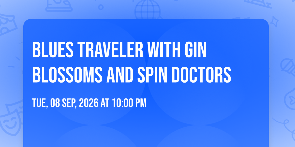 📍 Location: 38.1598, -85.7801✨ Experience the magic of Blues Traveler with Gin Blossoms and Spin Doctors, where moments become memories that last a lifetime! 🏛️ The iconic Iroquois Amphitheater in Louisville, KY sets the perfect stage for an unforgettable celebration on September 8th, 2026 at 10:00 PM. 🌟 It's been a curated experience that brings together the best of entertainment and innovation, creating an atmosphere of wonder and excitement. From the moment you arrive, you'll be immersed in a world where the ordinary transforms into the extraordinary. 🎊 Book early to secure your place in what promises to be an event that will be talked about for years to come!