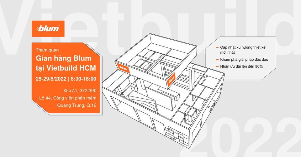 Từ ngày 25-29/8, Blum hân hạnh đón tiếp bạn đến Khu trưng bày Blum 135m2 tại Triển lãm Quốc Tế Vietbuild (Cổng B quẹo phải sẽ thấy sảnh chính A1, quầy 372 - 390):? Ưu đãi đến ⭐50% khay chia ngăn kéo và dụng cụ bếp⭐ Blum từ Áo