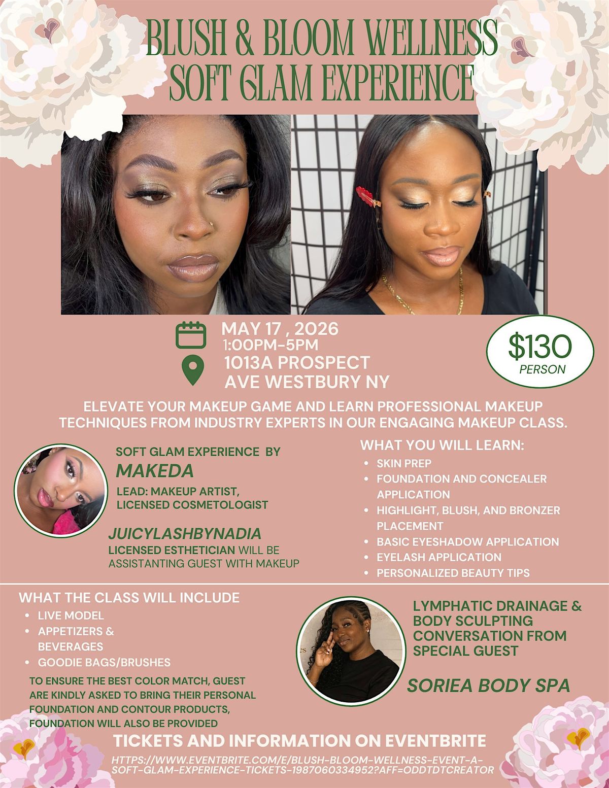 You will experience Soriea speak on Lymphatic drainage and body contouring/sculpting. Followed by Makeda and Patricia teaching you how to enhance your makeup routine step by step. This class is for beginners and people with experience.