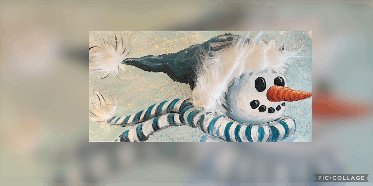 On an 11x14 canvas create this glittery, happy, furry snowman painting!