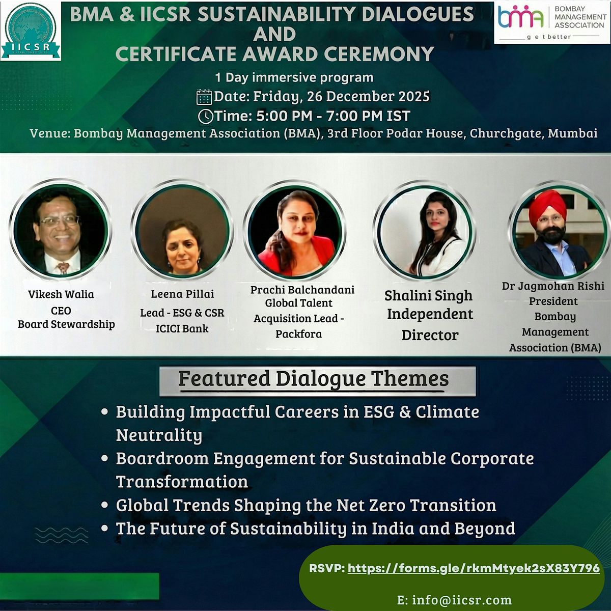 This evening is about careers that matter, boardrooms that lead responsibly, and global trends that are redefining Net Zero transformationโwith insights straight from those shaping policy, finance, governance, and talent globally.