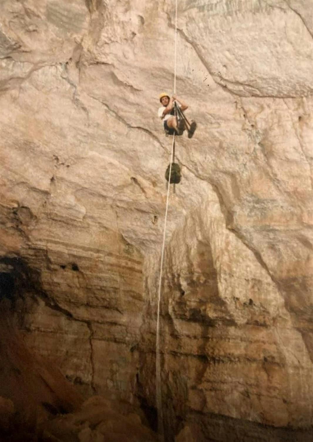 In 1992, when Tim Vaughan was asked if he wanted to abseil down the third largest underground cavern in the world, he jumped at the opportunity. Majlis al Jinn Cave, Oman, is one of the largest known cave chambers in the world, and at the time, very few people had ever explored it . All that was left to do was find the cave itself in the middle of a mountainous desert landscape, and find a 200m climbing rope with minimal bounce. Descending through Cheryl's drop, considered the most challenging entrance, Tim and the team started a 168m abseil.