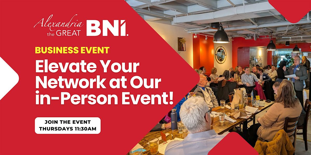 Welcome to BNI - Alexandria The Great - Business Networking event! Join us for a fantastic opportunity to connect with like-minded professionals, exchange referrals, and grow your business network. This event is perfect for entrepreneurs, small business owners, and anyone looking to expand their business reach. Don't miss out on this chance to make valuable connections and boost your business success. Register now and take your networking game to the next level!