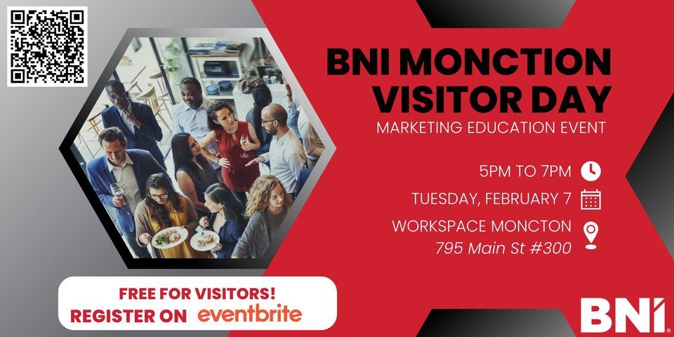 Join BNI's new Moncton Chapter for this visitor day and get to know why BNI members love being a part of this worldwide networking organization!At this marketing event you'll have the opportunity to: