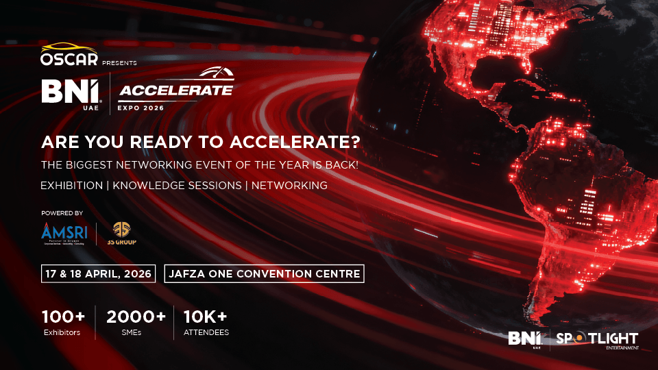BNI UAE EXPO 2026 | ACCELERATE is a flagship global business event bringing together entrepreneurs, business leaders, and decision-makers from across the BNI world and beyond. Hosted in Dubai - one of the world’s most connected business hubs - this two-day expo is designed to accelerate growth, visibility, and cross-border collaboration at scale.