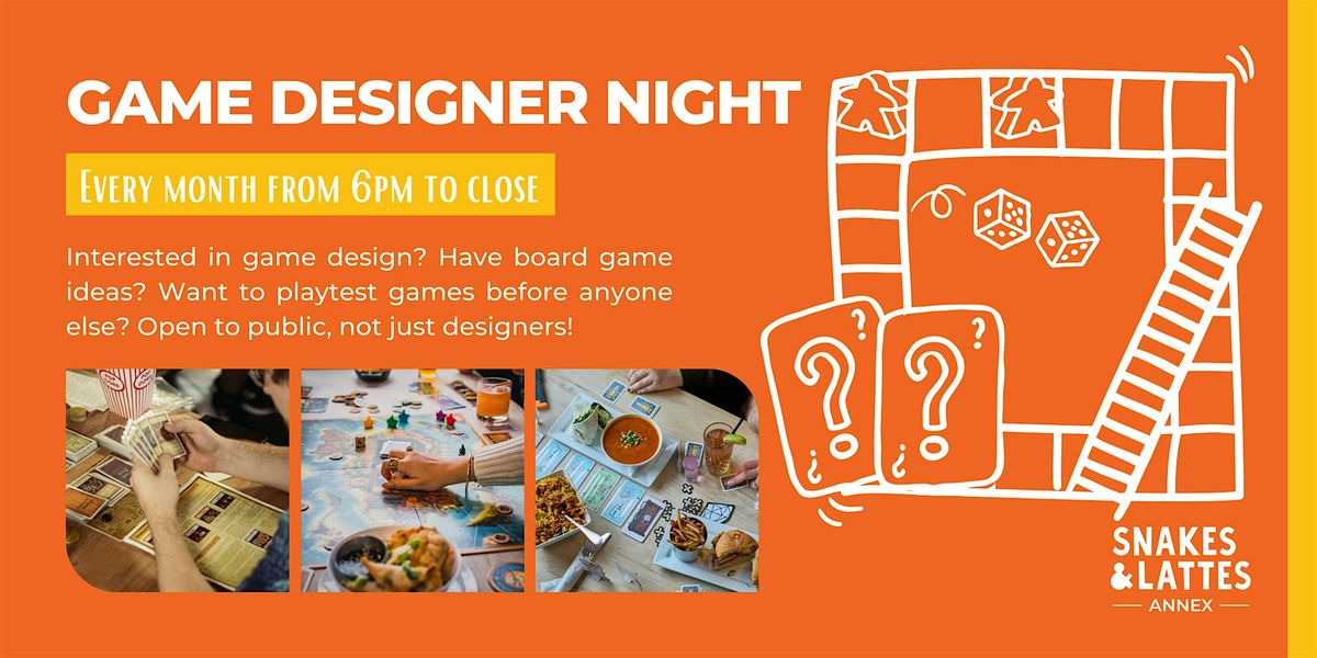 Join us at Snakes & Lattes Annex every month for Board Game Designer Night!
