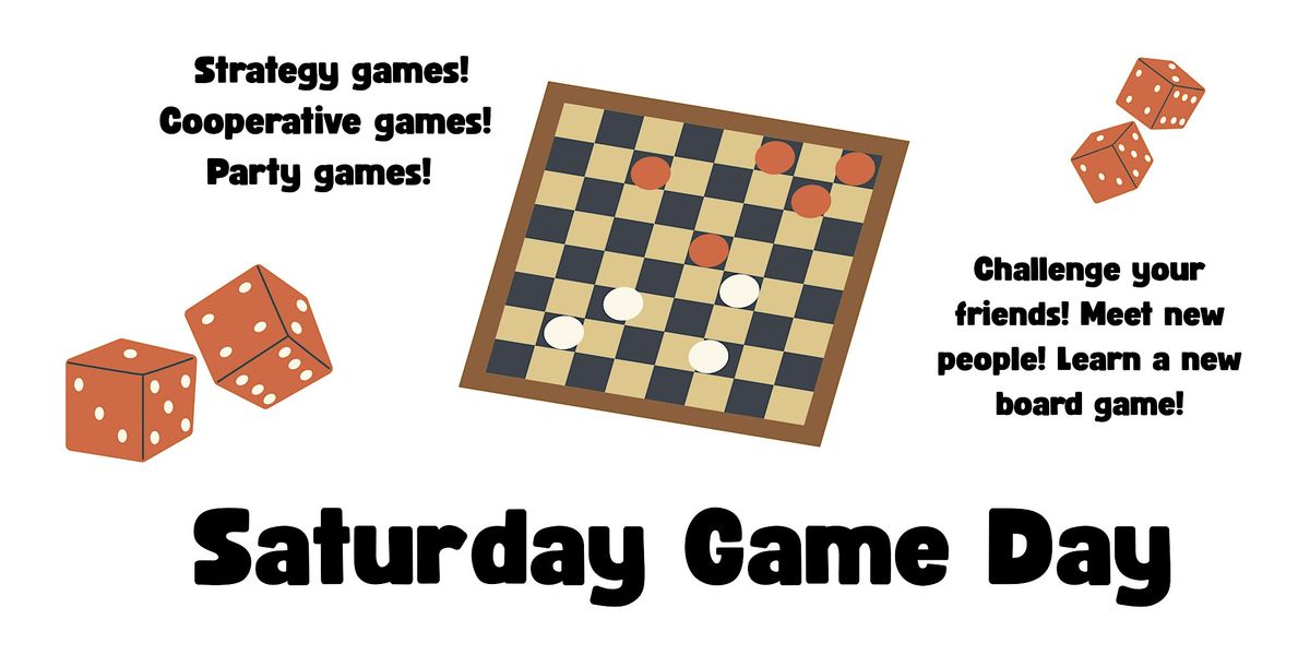 Come one come all for Saturday board games! Challenge your friends, meet new people, or learn a new game. Options include strategy games, cooperative games, and party games.
