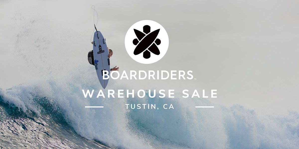 The Boardriders Warehouse Sale is coming to Tustin, CA! Featuring RVCA, Billabong, Quiksilver, and ROXY. Save up to 80% OFF retail on men's, women's and kids' apparel and accessories including: t-shirts, jackets, hoodies, sweaters, flannels, dresses, boardshorts, walkshorts, hats, sandals, sunglasses and much more!