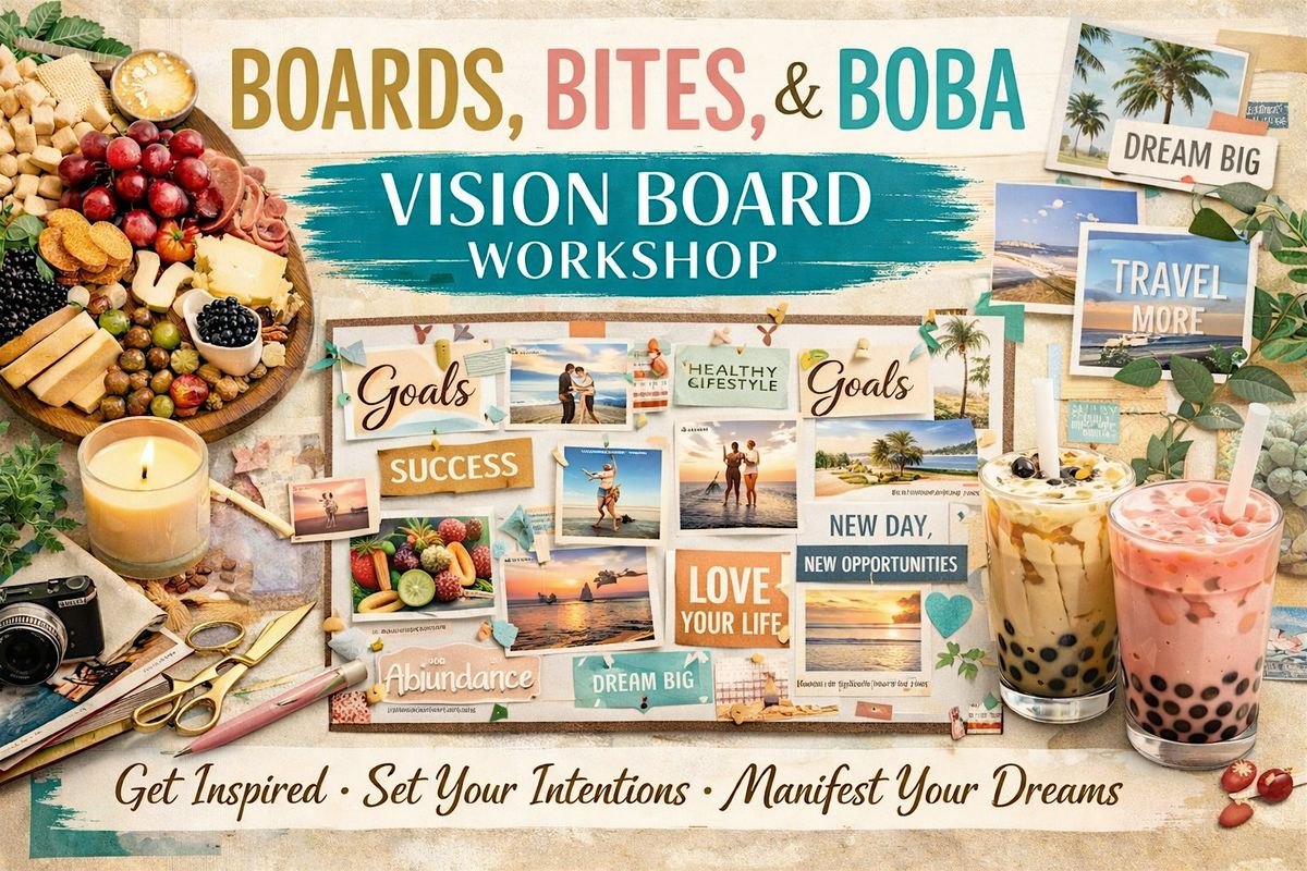 Start the year with clarity, creativity, and community! Join us for a fun and inspiring vision board workshop where dreams meet action—over delicious charcuterie bites and boba drinks.