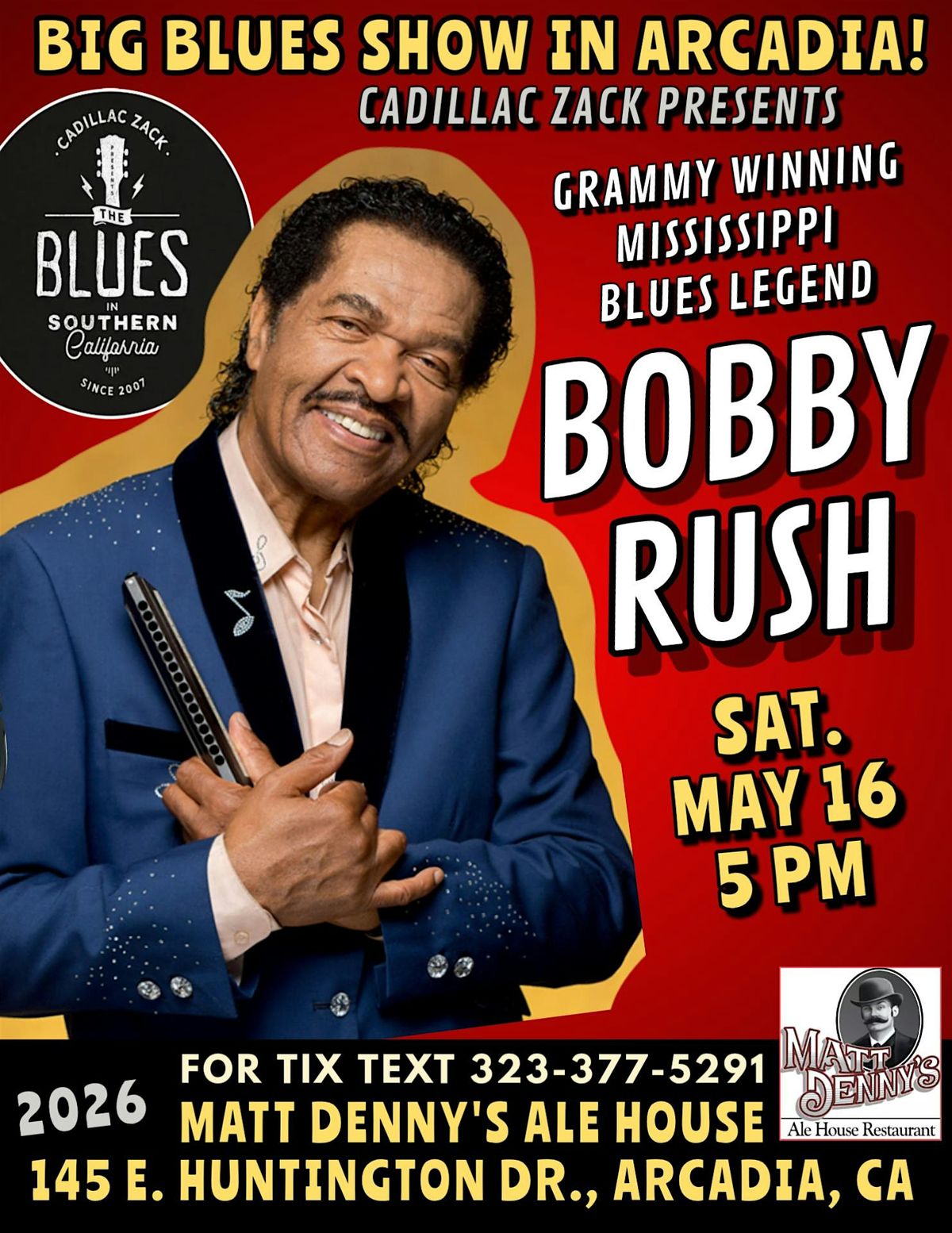BOBBY RUSH - GRAMMY WINNING BLUES LEGEND - in Arcadia!