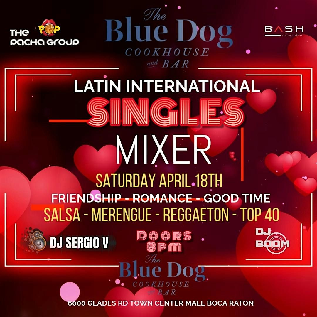 Welcome to BOCA's LATIN INTERNATIONAL SINGLES MIXER @ THE BLUE DOG! π Join us at THE BLUE DOG on SATURDAY APRIL8th at 8:00 PM for a night of fun, music, and mingling with other singles in your area! Don't miss this chance to meet your potential match in person. Ages 21 and up.