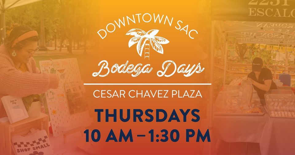 Welcome to Bodega Days at Cesar Chavez Plaza! Enjoy a weekly market every Thursday in Downtown Sacramento with farm-fresh produce, freshly baked bread, locally crafted gifts and artist creations, and a variety of food vendors.