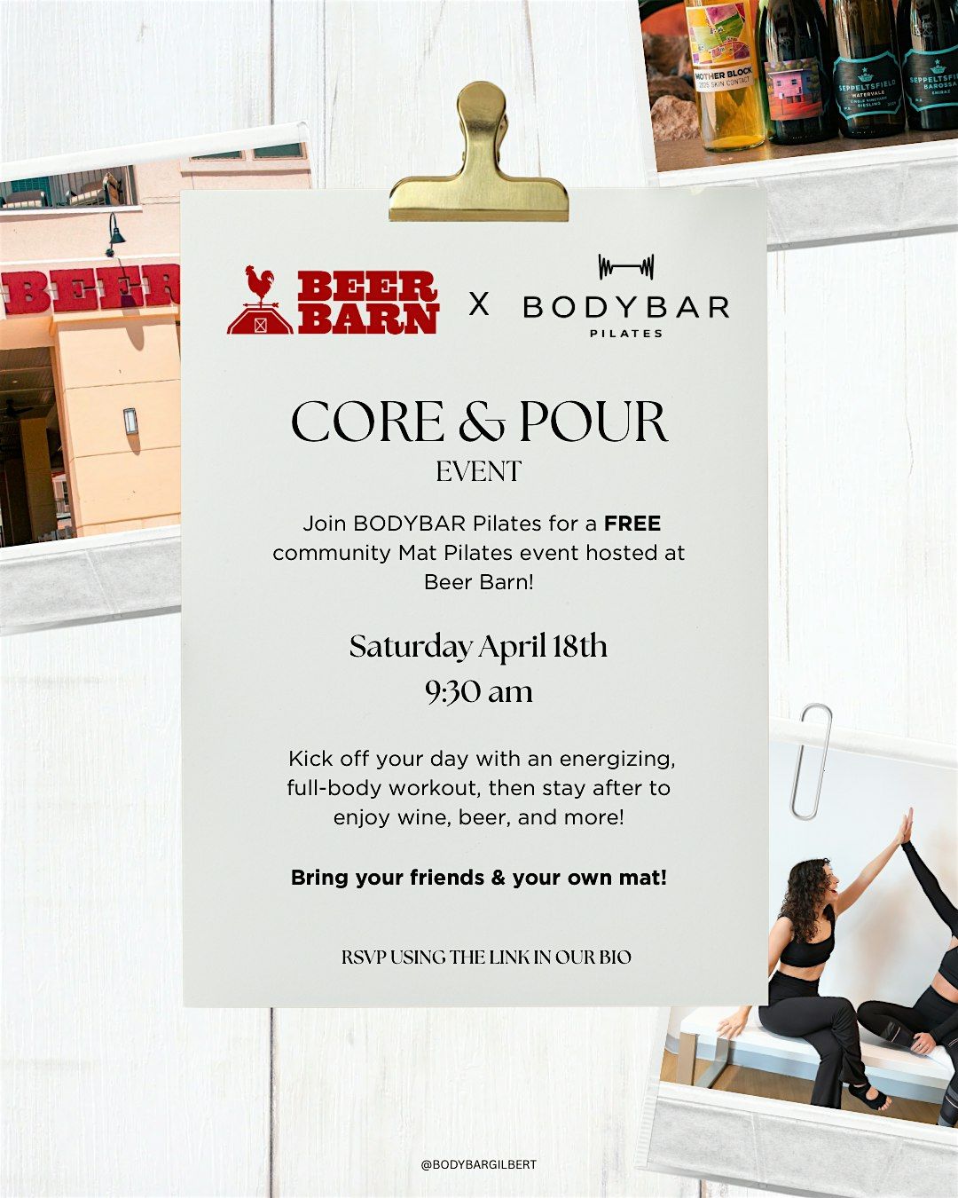 Join Bodybar Pilates for our Core & Pour, a FREE community Mat Pilates event hosted at Beer Barn!