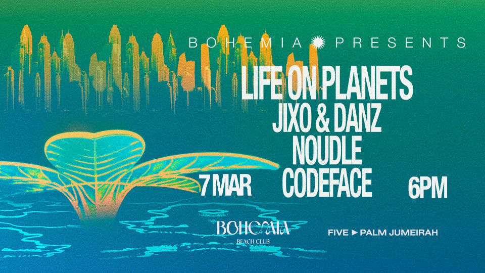 Life On Planets headlines Bohemia Presents, bringing his signature live performance to Dubai’s iconic beachfront.